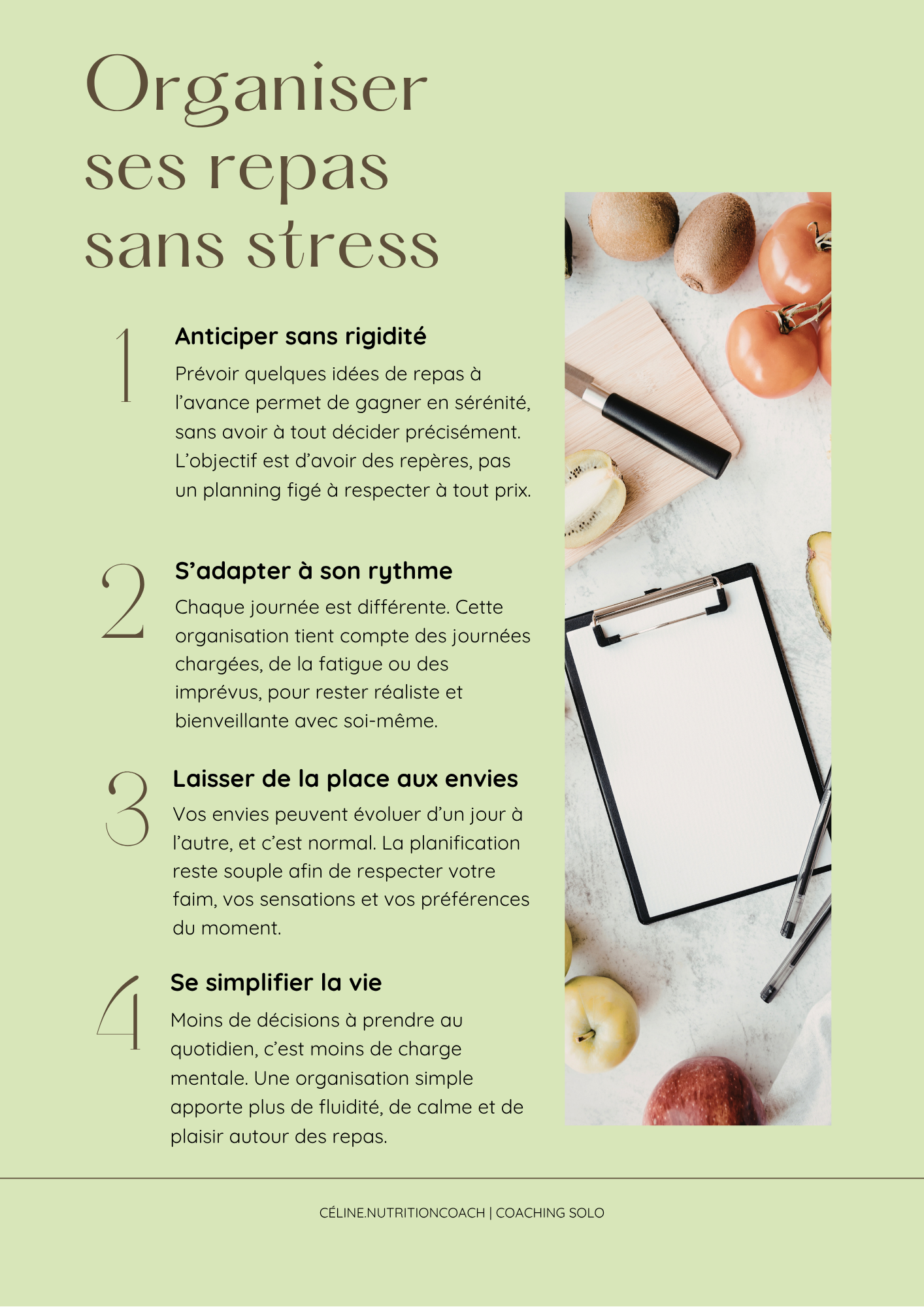 - ✅ Guides pratiques et plans de repas simples – pour organiser vos journées sans surcharge mentale